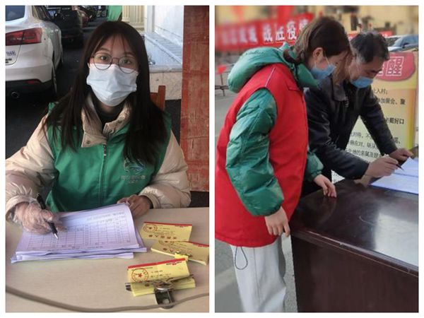 19级汉语国际教育的林姝茗志愿服务地点是连云港市赣榆区柘汪镇防疫站。每天,她坚持不懈地给从本小镇经过的车辆和人员做登记,用酒精消毒,测量体温,禁止外来人员进入。面对疫情,她感悟道:“这些天我在小镇的防控站做志愿者,所有人都很配合,目前没有发现什么特殊情况。病毒虽可怕,但我觉得民心已经战胜了它。我们坚信,不久,病毒将会被我们团结一心的中华儿女打败。”