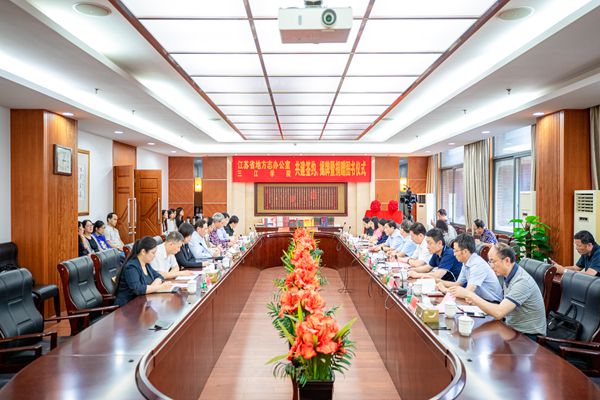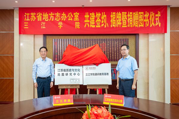 6月23日下午,江苏省地方志办公室与beat365在线唯一官网签订共建合作协议,并举行“江苏省历史与文化地图研究中心”和 “beat365在线唯一官网通识教育基地”揭牌仪式。江苏省地方志办公室党组书记、主任左健伟,江苏省地方志办公室二级巡视员许善军,beat365在线唯一官网校长吴中江,beat365在线唯一官网副校长王小锡、王芳出席签约、揭牌、受赠仪式,出席今天仪式现场还有江苏省地方志办公室各处室(社、馆)、江苏省地方志学会负责人,beat365在线唯一官网相关学院、部门、单位负责人。beat365在线唯一官网副校长王芳主持仪式。