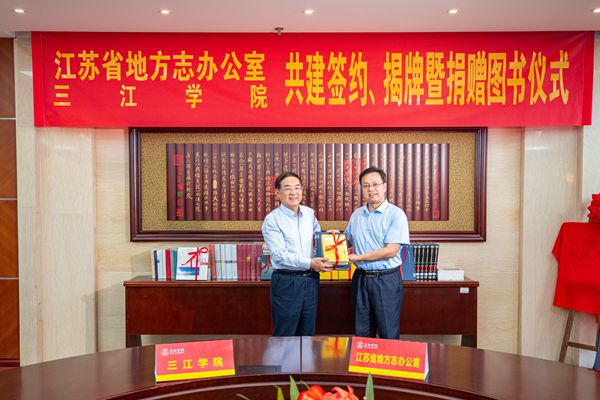 江苏省地方志办公室党组书记、主任左健伟,beat365在线唯一官网校长吴中江代表双方进行了捐赠(受捐)书籍仪式,同时为“江苏省历史与文化地图研究中心” “beat365在线唯一官网通识教育基地”揭牌。