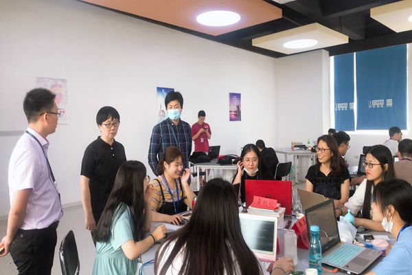 为进一步深化产教融合,落实人才培养方案,提高人才培养质量,了解学生实训基本情况,加强学生实训实习管理,8月13日,计算机科学与工程学院院长刘亚军、质量管理与评估处处长卞钰、教务处副处长魏志军等一行七人赴江苏云思教育科技有限公司探望了2017级卓越工程师班线下实训的学生,赴天津东软睿道教育信息技术有限公司分公司探望了2017级软件工程(嵌入式培养)线下实训的学生。