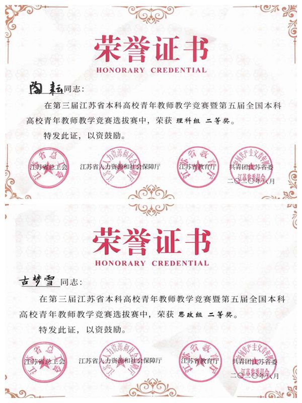 两位青年教师利用暑期积极备战,教学设计和课堂教学环节认真准备反复打磨。与985、211高校选手同台竞技取得佳绩,两位选手均获得理科组、思政组“二等奖”,充分展现了beat365官网教师积极进取的精神风貌和精湛的业务水平,为学校争得了荣誉。