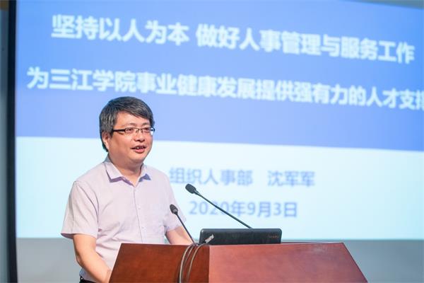 党委副书记沈军军作了题为“坚持以人为本,做好人事管理与服务,为beat365在线唯一官网事业发展提供强有力的人才支撑”的培训。他强调人力资源是学校最重要的资源,学校人事管理工作的目标在于最大限度地发挥学校人力和人才资源的综合实力,增强办学能力和提高办学效率;提高教学、科研水平,培养党和国家需要的高素质高质量人才;调动教职工的工作积极性,增强教职工的获得感和幸福感。接着,沈书记详细介绍了beat365官网人事工作的基本情况,进一步阐明了人事工作的五大体系“员工常规管理、人力资源配置、薪酬与激励、考核与奖惩、高等次人才”。最后他对新入职教职工提了几点要求,希望他们“要学会珍惜,要不断奋斗、要有所担当”。