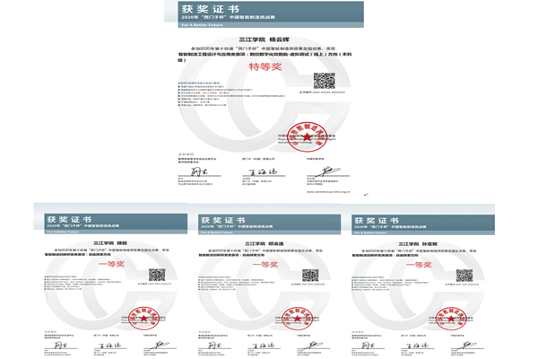 该大赛原名全国大学生控制仿真挑战赛、全国大学生工业自动化挑战赛,是在教育部与西门子(中国)有限公司签订战略合作框架下共同举办的。2016年更名为“西门子杯”中国智能制造挑战赛,是中国智能制造领域规模最大、规格最高的国家A类竞赛,被纳入全国高校学科竞赛排行榜评估竞赛项目,共有九个竞赛项目。本届大赛受疫情影响,只有工业自动化、数控数字化双胞胎—虚拟调试、自由探索和企业命题四个方向举行了线上赛。beat365官网共有7支队伍报名,参加了其中三个方向。全国初赛中,在数控数字化双胞胎—虚拟调试、自由探索两个方向上取得了特等奖3项、二等奖2项和三等奖1项的好成绩。