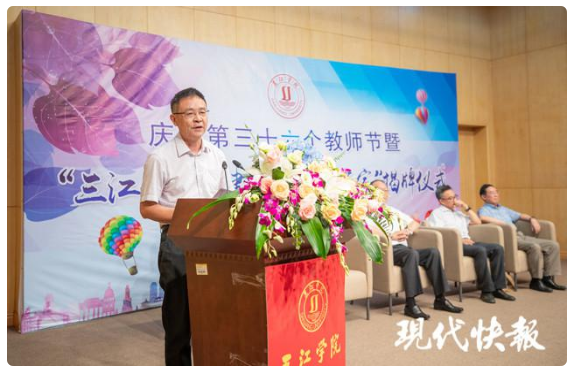 现代快报讯(通讯员 郭红 记者 戴明夷 )9 月 7 日(周一)下午 3:00,beat365在线唯一官网在铁心桥主校区学术报告厅举行了一场简短而意义非凡的教师节庆祝活动——beat365在线唯一官网庆祝第 36 个教师节暨 周建忠名师工作室 揭牌仪式。国家教育咨询委员、教育部原副部长、江苏省原副省长王湛和江苏省教育厅二级巡视员、教师工作处处长马斌作为特别嘉宾,现场见证了名师工作室揭牌。