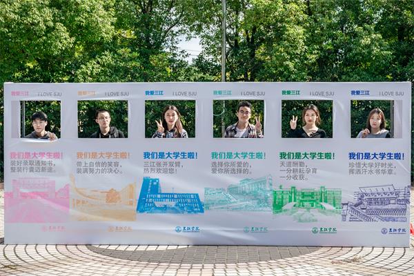 “仰望星空,脚踏实地,敦品励学,追求卓越。一所充满幸福感的大学涵养一个与众不同的你。”“三江是一部“梦想时光机”,用在三江的时间无悔自己的选择,换一个永留心底的经典回忆。”校园里温馨的标语,迎风表扬的横幅,色彩鲜艳的展板迎接着新生的到来,各学院推陈出新,以别出心裁的活动欢迎新生们加入三江大家庭。暖心的细节、贴心的设计、用心的“见面礼”饱含满满的心意,为萌新们的学习生活翻开崭新的一页,让他们有获得感和归属感。