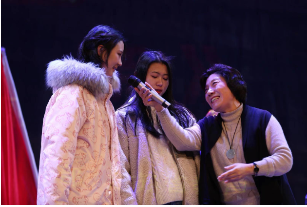 淮海战役中,60万将士不惧生死、浴血奋战,百万民众自告奋勇、推车支前,军民一心,才创造了彪炳史册的战争奇迹。江苏梆子剧院据此倾力打造大型倾力打造大型梆子现代戏《母亲》。戏中母亲的三儿子范三柱要去参军,青梅竹马的女孩送上了代表着情意悠悠的红腰带,两人在台上边扎腰带边唱着“沂蒙山水情意长”,台上的恋情与民族大义交织,红色题材和地方戏曲完美融合。而在敌营劝子这一幕中,范大娘得知自己仅剩下的二儿子竟然成了国民党的连长时,毅然走进军营去送包子煎饼,意图感化儿子。母亲在敌营里与国民党将领周旋舌战,台下的学生则聚精会神,欣赏这“智取敌营”的过程。这位感人至深的“母亲”范大娘虽是质朴的农民,但却通过送子参军、葬儿救生、生死年夜饭、敌营劝子等感人行动,将她对儿子牵心挂肠的母爱、对革命事业朴素的理解和真诚的支持演绎得淋漓尽致、感人至深。朴素的母子亲情,让红色故事更加可感。谢幕时,现场学子掌声如雷,感谢剧团主创人员带来的精彩演出。