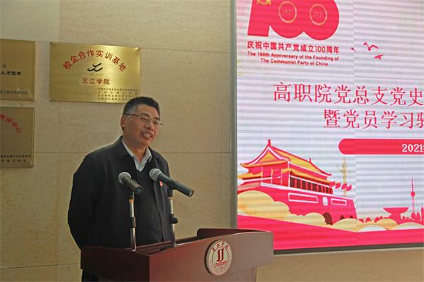 仇存进副校长总结讲话并宣布高职院党史学习教育正式启动。在讲话中,仇存进副校长对高职院师生党员提出了学习建议:学习要与个人实际紧密结合;在学习中领悟,学习中思考,学习中实践;能够把党史的学习与beat365在线唯一官网建校30年的历史学习做到有机结合,学党史与学校史相融合。