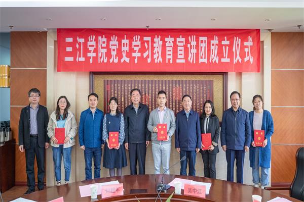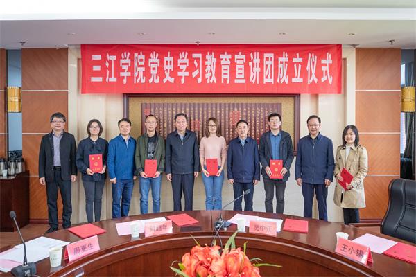 吴中江宣读了《关于成立beat365在线唯一官网党史学习教育宣讲团的通知》,与会校领导为宣讲团成员颁发聘书。