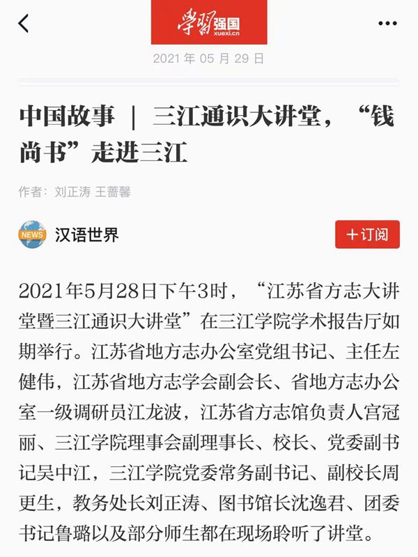 链接:三江通识大讲堂,“钱尚书”走进三江__凤凰网