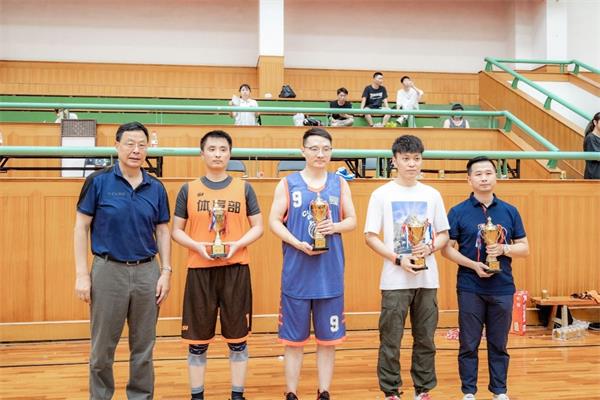 薛雨平宣布比赛结果。本次教职工篮球赛高等职业技术学院、第一机关2队、第一机关1队分别获得女子投篮前三名。体育部、艺术学院、文新机电联队分别摘得男子篮球比赛冠军、亚军、季军。