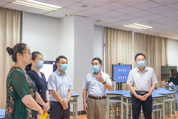校领导详细询问了有关线上教学准备、线上教学授课形式等情况,实时在线巡视了外国语学院翁晓斌老师的《英语学术论文写作》、法商学院李根忠老师的《金融衍生品概论》、机械与电气工程学院曹国华老师的《微机原理及应用》、电子信息工程学院赵俊霞老师的《集成电路CAD》、文化产业与旅游管理学院孙灿老师的《企业形象设计》、艺术(演艺)学院王宜军老师的《空间模型设计》等线上课程。