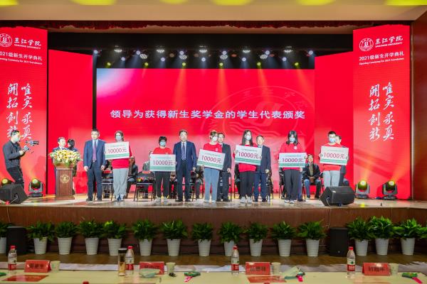 校领导为获得优秀新生奖学金的学生代表颁奖