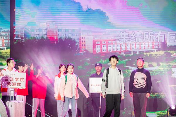 开学典礼结束后,举行了2021年迎新晚会。晚会分为《启航》《青春》《新梦》三个篇章。情景舞蹈《奔跑的青春》作为开场舞瞬间点燃热情,《夏天的梦是什么颜色的》用合唱的方式演绎夏日的精彩,为2021年的夏天留下最动人的记忆;《跨越时空的青春对话》用情境式再现经典,缅怀先烈,重温历史,激励后人;《灯火里的中国》以唯美的舞蹈,中国红的长裙搭配带来视觉盛宴;《美丽三江有我在》以优美的旋律,感受到了家的温暖,中国舞、街舞和拉丁舞交汇而成的《梦想从这里出发》;舞者们再现了传统与现代的完美结合,配上“翘袖折腰”般柔软的腰身,再加上梦幻唯美的灯光,复刻出汉唐乐舞《采薇》;动感音乐舞蹈《正青春》给观众带来了动感鲜明的视觉体验,让我们感受到了青春的力量;诗朗诵《青春万岁》呈现诗歌与音乐的结合,用声音感知美丽的世界;青春洋溢的舞蹈《我们都是追梦人》寓意着三江学子乘风破浪,同心携手实现梦想。