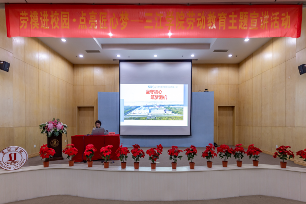 为贯彻落实习近平总书记在全国教育大会上的讲话精神和《中共中央国务院关于全面加强新时代大中小学劳动教育的意见》文件精神,校工会联合学生发展与服务中心邀请全国劳动模范沙夕兰于11月9日在学术报告厅举办“劳模进校园·点亮匠心梦”劳动教育主题宣讲活动。
