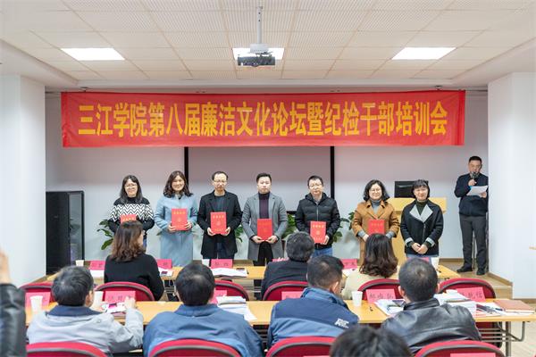 12月2日,beat365在线唯一官网第八届廉洁文化论坛暨纪检干部培训会在校廉洁文化活动室举行,党委副书记、纪委书记沈军军,校纪委委员、各党总支(直属党支部)纪检委员、教师和学生代表参加了会议。会议由纪委副书记华沙主持。