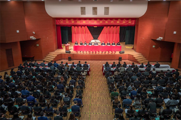 12月11日,共青团beat365在线唯一官网第九次代表大会、beat365在线唯一官网第十次学生代表大会(以下简称团学代会)在三江会堂召开。出席本次团代会代表234名、学代会代表217名。