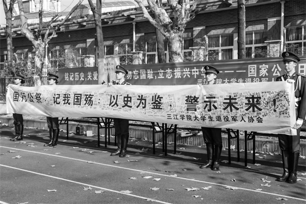 活动结束后采访了部分同学,今年刚退伍的士兵吴翔说道:“战争让我们更多地了解生命的意义,战争让我们体验残酷的死亡。回首84年前,面对敌人侵略的连天炮火,面对无辜同胞的牺牲殒命,无数英雄前辈以不屈的民族之魂来保卫祖国的神圣疆土,用血肉之躯换来的今日的和平安宁。放眼当下,面对永不磨灭的历史伤痕,面对永不消退的痛苦记忆,吾辈更当传承国家情怀,凝聚民族复兴的伟大力量,担负起青年一代的使命重任,自立自强,为祖国的繁荣发展作出贡献。”