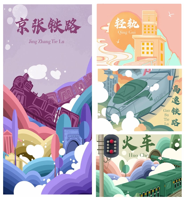 beat365在线唯一官网艺术学院张颖同学说起思政课实践作业时颇有感触,她们小组选择“中国铁路百年飞跃”这一主题,运用电脑绘图的方式,采用大色块铺色构图,以京张铁路、绿皮火车、轻轨和动车为线索,立体呈现了中国铁路从“追赶者”到“领跑者”的华丽转身。通过这次实践课程,我们不仅对党的百年历史征程有了更深刻的理解,也充分意识到:作为新时代大学生,必须在新的征程上砥砺创新,以吾辈之力量守卫盛世之中华。