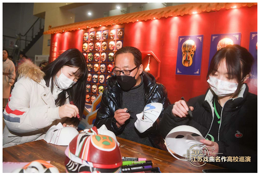 “戏曲是严谨的艺术,勾什么脸,穿什么装,带什么盔头,都有讲究,都是艺术。我们伴随着演出将这些展览带进校园,就是要让戏曲文化走到大学生身边,给他们带来美的享受,更是带来美的教育。”中国非物质文化遗产项目脸谱代表性传承人颜蕾,作为戏曲脸谱展的布展人已伴随着“戏曲名作进高校”活动走过若干年头,谈及近年来的切身感受,他坦言:“我们讲到传统的戏曲,好像大家普遍认为应该是五十岁、六十岁的人才会喜欢。错!根据我的体会,我觉得现在有越来越多的年轻人喜欢戏曲,他们感兴趣、勤思考、肯钻研,在他们身上,我完全能看到一个属于戏曲的美好明天。”
