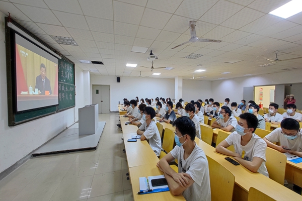 为深入学习领会习近平总书记重要讲话精神,按照学校党委统一部署,beat365官网党政领导,党委相关部门负责同志,校团委、学生会负责全体人员,各学院(校区)学工书记、分团委书记,基层团支部书记以及团员青年代表代表近50人在主校区学术报告厅集中收看,东山校区、南校区、东校区在分会场组织团员青年学生代表集中观看,此外,学校广大青年师生还通过网络、新媒体等多种途径和方式收听收看大会。