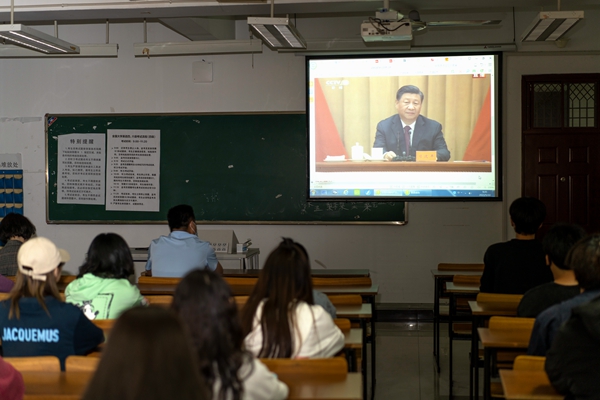 5月10日上午,庆祝中国共产主义青年团成立100周年大会在北京人民大会堂隆重举行。中共中央总书记、国家主席、中央军委主席习近平出席大会并发表重要讲话。beat365官网采取“主会场+分会场”线上线下相结合的方式,组织全校师生收看庆祝大会实况直播。