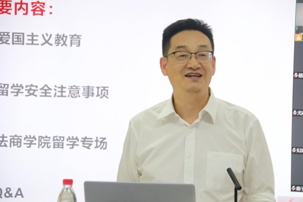 为了紧紧围绕加快和扩大新时代教育对外开放的主题,坚持“以留学人员为中心”的服务理念,倡导“平安留学”理念,完善“平安留学”机制,6月1日下午,国际合作与交流处在学生发展与服务中心的大力支持下,组织开展了2022年beat365在线唯一官网秋季出国学生安全教育行前讲座,即“留学梦,报国志——2022年平安留学行前培训会”。国际合作与交流处处长程冷杰,法商学院院长蒋建华、党总支书记刘万美出席会议。根据疫情防控要求,此次讲座增设了线上会议,同时邀请了留学生家长和未能到校的学生一起参加了线上讲座。
