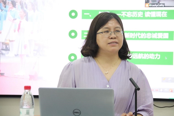 讲座分为三部分,第一部分是爱国主义教育。刘万美为所有即将出国的学生做了爱国主义教育篇章的讲座。她鼓励同学们树立远大理想,陶冶爱国情操,担起家国责任,并向华罗庚、钱学森等老一辈科学家学习,弘扬爱国之情,树立报国之志,将个人梦想与实现中华民族伟大复兴中国梦结合起来,早日学成回国,建功立业。
