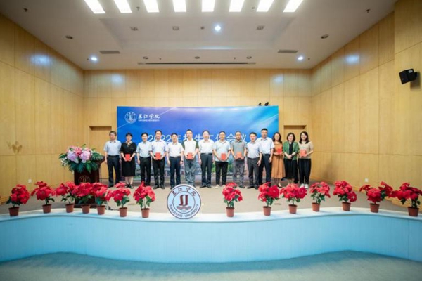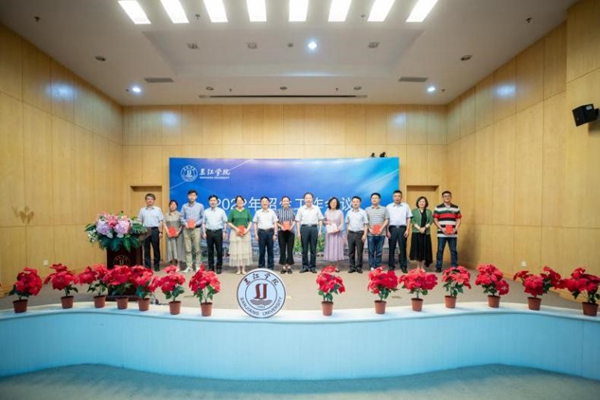 会上对2021年招生工作进行了表彰,颁发了2021年招生贡献奖。全体校领导为14位省内外招生工作组获奖代表颁奖。