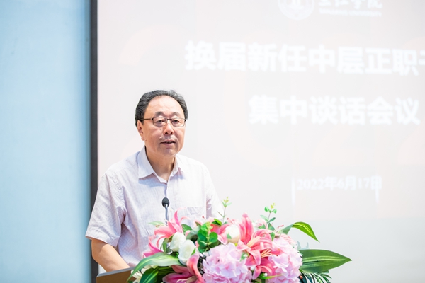6月17日,学校在学术报告厅召开新任中层正职干部集中谈话会。全体校领导,全体新任命(聘任)中层正职干部,全体党委委员、纪委委员、教代会执委会委员,各级人大代表、政协委员,各民主党派人士代表出席。校党委书记封超年讲话,校长吴中江主持会议。