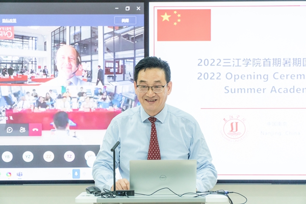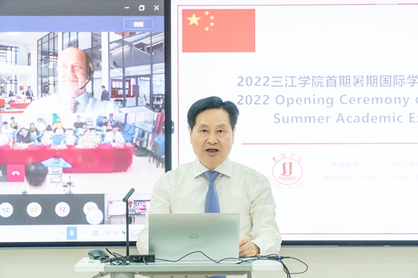 由国际合作与交流处和法商学院共同举办的2022年首届暑期国际学术交流训练营6月20日下午在beat365在线唯一官网第三教学楼215智慧教室举行了开营仪式。参加首届暑期国际学术交流训练营开营仪式的有:副校长唐万宏、法商学院院长蒋建华、党总支书记刘万美、副院长李益平,国际合作与交流处处长程冷杰以及参加本次暑期国际学术交流训练营的学生和部分教师。