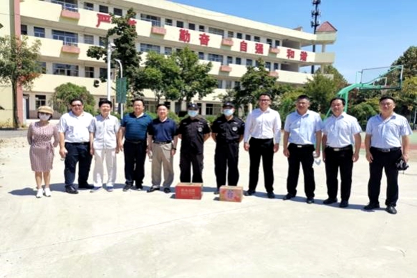 在工作推进会现场,吴中江校长给坚守岗位的一线工作人员发放了饮料、矿泉水等慰问品,叮嘱他们要注意防暑降温,并代表学校对他们冒酷暑、战高温的工作热情表示感谢。