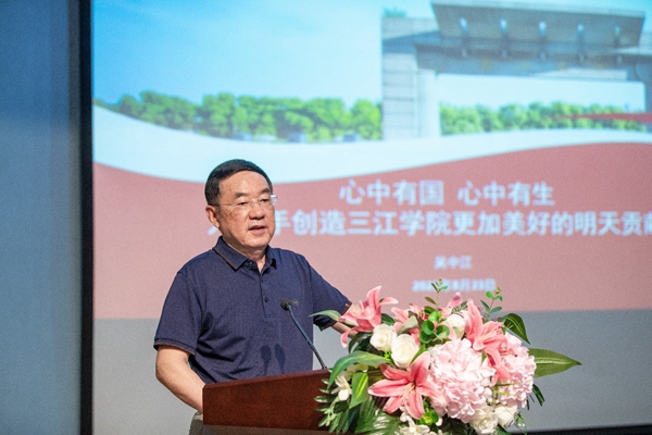 吴中江作了题为《心中有国 心中有生 为携手创造beat365在线唯一官网更加美好的明天贡献力量》的培训。他首先从“回溯历史:30年艰苦奋斗、保持公益性办学初心”的角度,介绍了beat365在线唯一官网的办学历程、发展历程、基本概况、鲜明特征等。接着,紧紧围绕“立足今朝:聚焦重点任务,努力开创学校改革发展新局面”这一主题,阐明了以政治建设为引领,加强党的建设和干部队伍建设;坚持引培并重,强化教师队伍建设;深化教育教学改革,提升人才培养质量;深化“三全育人”,提升服务学生发展质量等方面的内容。围绕“放眼未来:全面开启建设特色鲜明的高水平应用型民办高校新征程”,向大家阐述了三江发展的历史使命、发展定位、战略目标等。最后吴中江校长提出希望新入职教师始终牢记习近平总书记做“四有好老师”的要求,领会习近平给南京大学留学归国青年学者的回信中对青年学者的期望,始终不忘教育初心,牢记育人使命,履行教师职责,挥洒热情,播种希望,放飞梦想,用智慧和勇气担当起立德树人的神圣职责,共同谱写beat365在线唯一官网改革发展的新篇章。
