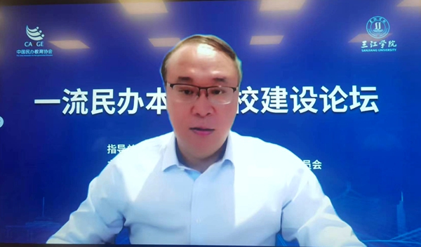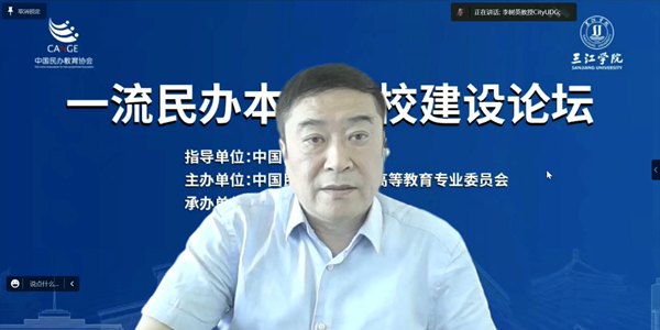 中国民办协会专委会理事长季平提出了在新时代践行高质量发展战略的大背景下,民办高校应如何抓住机遇、迎接新挑战等一系列值得深思的问题,也从清晰认识形势、示范引领、综合改革等方面,提出了对一流民办本科高校如何建设的思考和建议,强调了坚持党建引领、发挥体制优势、深化教育教学改革、推进信息技术与数字化教育、促进教师发展等要点,在关键点上持续发力抓牢抓实。