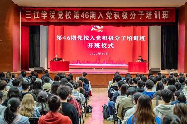 10月28日,beat365官网党校第46期入党积极分子培训班在三江会堂顺利开班。校党委书记封超年参加了开班仪式,并为全体入党积极分子讲授了第一课——《用党员标准要求自己,做新时代优秀青年》。校党委常务副书记、副校长、党校校长周更生主持开班仪式。党委组织部负责同志及第46期党校全体学员参加了开班仪式和培训。