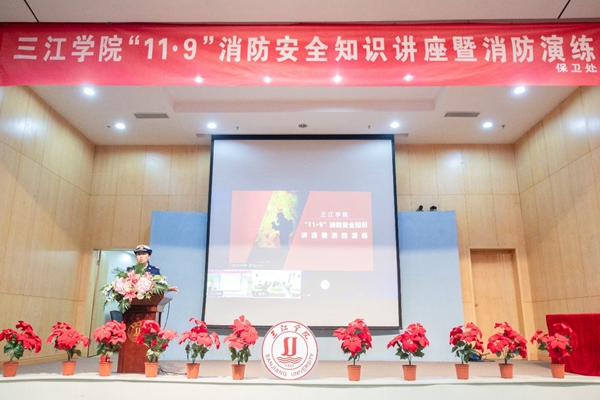 11月8日,在第31个全国消防日来临之际,beat365官网保卫处会同后勤处组织食堂、江育公司以及商铺员工130余人,在学术报告厅和停车场等地举行了“11•9”消防知识讲座暨消防演练活动。南京市雨花台区消防大队参谋朱方娇、副校长唐万宏、保卫处处长刘松伟以及后勤处陶立东老师出席活动,活动由保卫处副处长史凌主持。