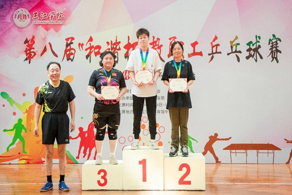 本届比赛除了设置混合团体、男单、女单三个传统项目,还增设了趣味乒乓赛。趣味赛中男子乒乓球掷投第一名是计算机科学与工程学院徐建华老师、第二名是建筑学院朱国忠老师,来自保卫处谢国政老师、外国语学院庆学先老师和建筑学院章常云老师并列第三名。男子乒乓球夹球第一名是建筑学院朱国忠老师、第二名是计算机科学与工程学院徐建华老师,来自高等职业技术学院夏昕老师、文学与新闻传播学院许金龙以及机械与电气工程学院康杰老师并列第三名。女子乒乓球掷投前三名由校长办公室谷鑫老师、电子信息工程学院束燕老师和高等职业技术学院曹路路老师获得。女子乒乓球夹球项目第一名是电子信息工程学院任丽丽老师,第二名是图书馆盛晟老师,来自电子信息工程学院杨喆娴老师和文化产业与旅游管理学院朱桂元老师并列第三名。
