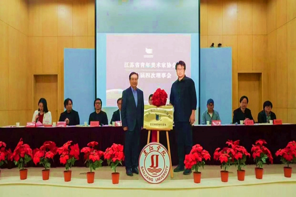 会中,蔡芝竖、袁景分别宣读了授予beat365在线唯一官网“江苏省青年美术家协会创作基地”及成立漆画艺委会决定;唐万宏与赵震对其进行揭牌,艺术学院院长张五力教授被聘为省青年美协漆画艺委会顾问,艺术学院年轻教师张静当选省青年美协漆画艺委会副主任,娄可可当选为秘书长。