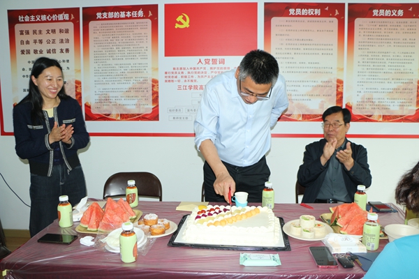5月6日,高等职业技术学院(以下简称“高职院”)全体老师们欢聚在东校区406会议室,开展2023年“美妙‘食’光,欢聚共赏”冷餐会暨年度生日会活动。beat365在线唯一官网副校长仇存进、工会主席杨业琴莅临东校区,与全院所有老师共同度过了一段美好“食”光。本次活动由高职院党总支书记沈爱军主持。
