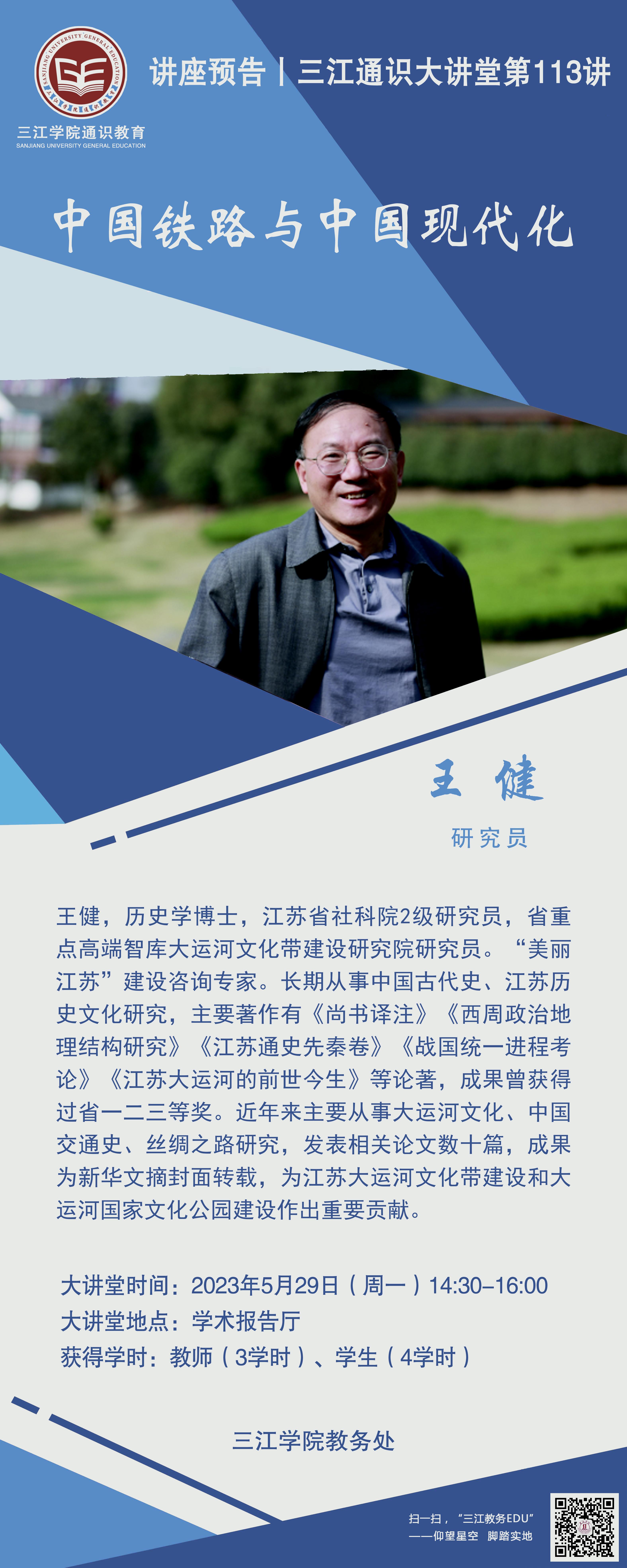 大讲堂专家:王健,历史学博士,江苏省社科院2级研究员,省重点高端智库大运河文化带建设研究院研究员。“美丽江苏”建设咨询专家。长期从事中国古代史、江苏历史文化研究,主要著作有《尚书译注》、《西周政治地;理结构研究》、《江苏通史先秦卷》、《战国统一进程考论》、《江苏大运河的前世今生》等论著,成果曾获得过省一二三等奖。近年来主要从事大运河文化、中国交通史、丝绸之路研究,发表相关论文数十篇,成果为新华文摘封面转载,为江苏大运河文化带建设和大运河国家文化公园建设作出重要贡献。