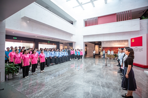 “这个人,来了,海棠叶还没红;这个人,走了,海棠花已谢……”外国语学院12020011F班声情并茂的诗朗诵如歌如诉,句句真情而汪洋恣意、娓娓道来又大开大合的朗诵荡气回肠地在大厅中响起,让红色文化在血脉中流淌;“周恩来班”全体学生集体宣誓,让人在感慨激情燃烧的岁月中,感受到了赤诚的心立下的沉甸甸的誓言。