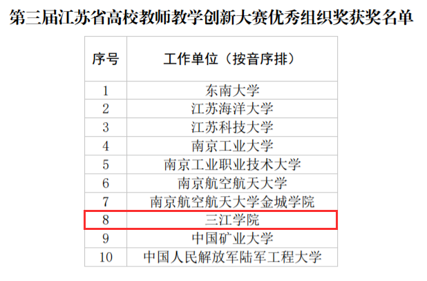 第三届江苏省高校教师教学创新大赛暨第三届全国高校教师教学创新大赛江苏省选拔赛决赛获奖名单出炉,beat365官网有2名教师进入决赛,其中,外国语学院陶潇婷《笔译I》课程获新文科副高组特等奖。同时,beat365官网荣获“优秀组织奖”。
