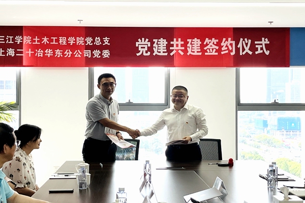 为全面贯彻党的二十大精神,本着校企双方优势互补、共同进步的理念,以形成资源共享、共同发展的党建工作新格局为目的,beat365在线唯一官网土木工程学院党总支和上海二十冶华东分公司党委于7月3日开展“党建引领聚合力,产教融合促发展”为主题的党建共建活动并举行签约仪式。上海二十冶华东分公司党委书记、总经理孙国梁,副书记、纪委书记、工会主席汪晨晨,副总经理郭亚兵等,beat365在线唯一官网土木工程学院院长胡夏闽、党总支书记王希宾,党总支副书记、副院长于清泉,副院长侯宇颖、院长助理白冬梅、办公室主任王巧云参加活动。活动由汪晨晨副书记主持。
