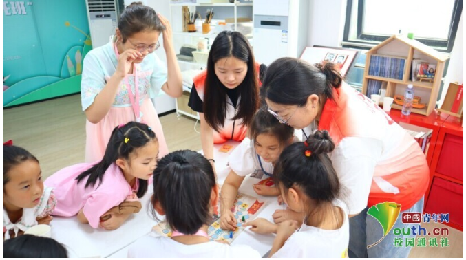 图为志愿者们为社区小朋友们带来一系列红色教育课程。中国青年网通讯员 熊钰灵摄