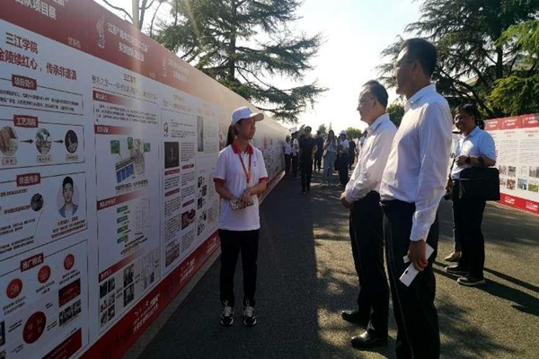 此外,在8月31日举办的第九届江苏省“互联网+”大学生创新创业大赛“青年红色筑梦之旅”活动启动仪式上,创新创业学院组织了“《奔跑吧小兵》—中国首部以弱视儿童为主角的动画连续剧”、“掐丝金缕—金陵续红心,传承非遗滇”、“蟹农之友—科技赋能河蟹产业,助力乡村振兴”等三个学生创业项目团队参加了展示。江苏省教育厅副厅长杨树兵等出席活动的领导参观项目展板,并听取团队负责人的汇报,充分肯定了beat365官网创业项目的活动成效及社会意义。