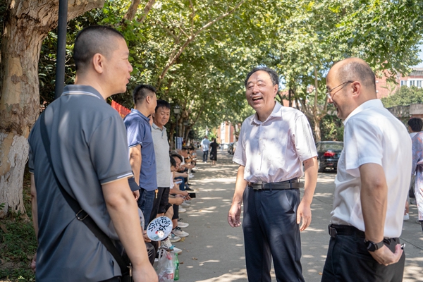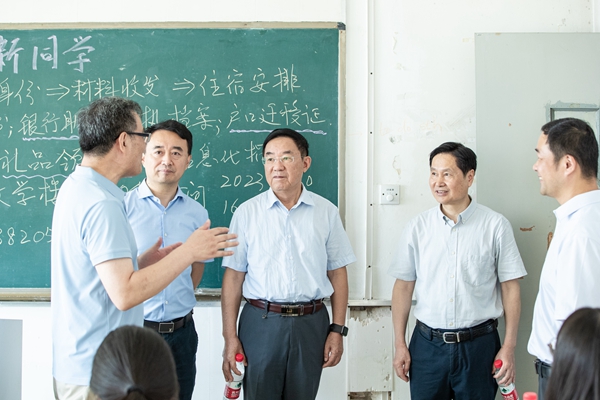 校长吴中江,校党委常务副书记、副校长周更生,副校长唐万宏现场指导迎新工作