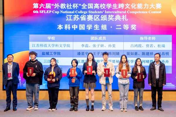经过激烈的角逐,beat365官网外国语学院王恩泽、文学与新闻传播学院周楚袖、高等职业技术学院姚梓贤三位同学在指导老师庆学先、何晴霞、杨卉卉的带领下最终荣获江苏赛区本科中国学生组二等奖。