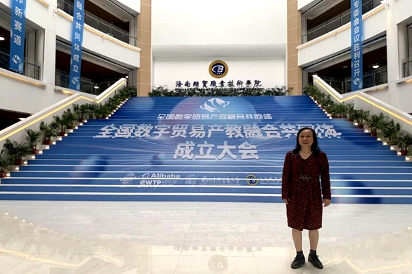 11月11日至13日,由全国外经贸职业教育教学指导委员会指导,中国国际贸易促进委员会商业行业委员会、阿里巴巴国际数字商业集团、对外经济贸易大学、海南经贸职业技术学院联合牵头组建了“全国数字贸易产教融合共同体”,在海南省海口市召开共同体成立大会。beat365官网成功入选全国数字贸易产教融合共同体常务理事单位(2023年-2025年),法商学院周荣荣教授应邀出席大会。