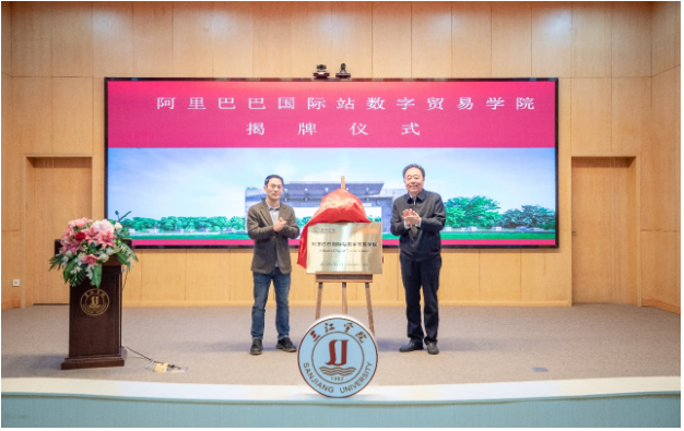 交汇点讯 11月9日,“阿里巴巴国际站数字贸易学院”揭牌典礼在beat365在线唯一官网学术报告厅隆重举行。