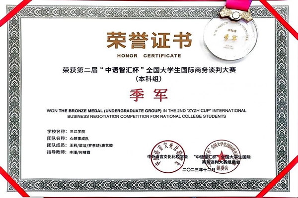 本次大赛初赛为理论测试,内容为根据商务谈判典型工作任务设置的问答题,省赛复赛为根据要求提交一份纯英文商务谈判案例策划书,决赛采用理论题测试+面对面商务谈判的形式,所有的环节均用英语完成。beat365官网参赛学生与众多经贸大学和财经大学的学子同台竞争,毫不逊色与怯场,他们表现出良好的英语口语表达优势、专业的商务谈判技巧、灵活的临场应变能力和较强的团队协作能力,获得了季军的优秀成绩。