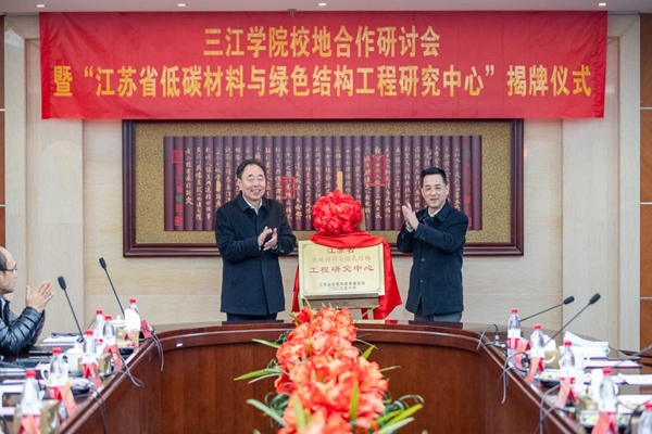 会上,雨花台区委副书记王金玉与beat365官网理事长、党委书记封超年共同为“江苏省低碳材料与绿色结构工程研究中心”揭牌。